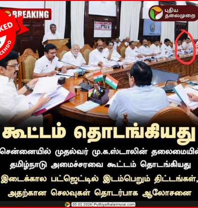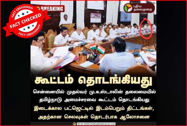 ‘‘பதவியில் இல்லாமலேயே திமுக அமைச்சரவைக் கூட்டத்தில் பங்கேற்ற செந்தில் பாலாஜி’’ என்று கூறி, சமூக வலைதளங்களில் பரவும் தகவல் பற்றி ஆய்வு மேற்கொண்டோம். தகவலின் விவரம்: இதனை வாசகர்கள் நமக்கு வாட்ஸ்ஆப் சாட்போட் (+919049053770) வழியே அனுப்பி, உண்மையா என்று சந்தேகம் கேட்டனர். இதில், ‘’கூட்டம் தொடங்கியது. சென்னையில் முதல்வர் மு.க.ஸ்டாலின் தலைமையில் தமிழ்நாடு அமைச்சரவைக் கூட்டம் தொடங்கியது. இடைக்கால பட்ஜெட்டில் இடம்பெறும் திட்டங்கள், அதற்கான செலவுகள் தொடர்பாக ஆலோசனை’’ என்று எழுதப்பட்டுள்ளது. Claim Link 1 […]