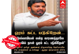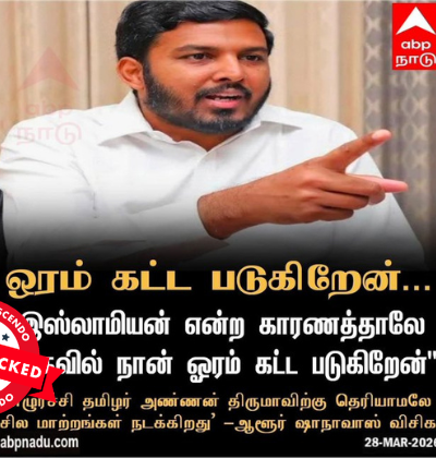 ‘‘இஸ்லாமியன் என்பதால் விசிகவில் ஓரங்கட்டப்படுகிறேன்,’’ என்று ஆளூர் ஷாநவாஸ் கூறியதாக, சமூக வலைதளங்களில் பரவும் தகவல் பற்றி ஆய்வு மேற்கொண்டோம். தகவலின் விவரம்: இதனை வாசகர்கள் நமக்கு வாட்ஸ்ஆப் சாட்போட் (+919049053770) வழியே அனுப்பி, உண்மையா என்று சந்தேகம் கேட்டனர். இதில், ‘’ ஓரம் கட்ட படுகிறேன்…”இஸ்லாமியன் என்ற காரணத்தாலே விசிகவில் நான் ஓரம் கட்ட படுகிறேன்” – ஆளுர் ஷாநவாஸ் விசிக,’’ என்று எழுதப்பட்டுள்ளது. Claim Link 1 l Claim Link 2 l […]