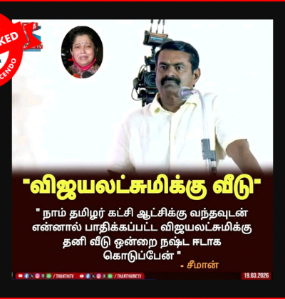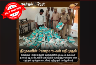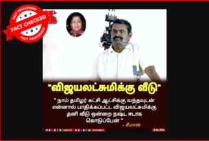 ‘‘சிபிஐ விசாரணை முடிந்து முகத்தை மூடிக்கொண்டு வெளியேறிய விஜய்’’, என்று கூறி, சமூக வலைதளங்களில் பகிரப்படும் ஒரு நியூஸ் கார்டு பற்றி ஆய்வு மேற்கொண்டோம். தகவலின் விவரம்: இதனை வாசகர்கள் நமக்கு வாட்ஸ்ஆப் சாட்போட் (+919049053770) வழியே அனுப்பி, உண்மையா என்று சந்தேகம் கேட்டனர். இதில், ‘’7 மணிநேர சிபிஐ விசாரணை முடிந்து திரும்பிய விஜய்,’’ என்று எழுதப்பட்டுள்ளது. இதனுடன் விஜய் முகத்தை மூடிக்கொண்டு செல்வது போன்ற புகைப்படம் ஒன்றும் இணைக்கப்பட்டுள்ளது. Claim Link பலரும் […]