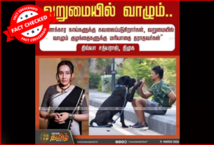 ‘‘மு.க.ஸ்டாலின் ஆட்சி முடிவுற்றதை பட்டாசு வெடித்து கொண்டாடிய தூய்மைப் பணியாளர்கள்,’’ என்று கூறியதாக, சமூக வலைதளங்களில் பரவும் தகவல் பற்றி ஆய்வு மேற்கொண்டோம். தகவலின் விவரம்: இதனை வாசகர்கள் நமக்கு வாட்ஸ்ஆப் சாட்போட் (+919049053770) வழியே அனுப்பி, உண்மையா என்று சந்தேகம் கேட்டனர். இதில், ‘’ தூய்மை பணியாளர்கள் கொண்டாட்டம். திருட்டு திமுகவின் ஆட்சி முடியப்போறதை பட்டாசு வெடித்து கொண்டாடிய தூய்மை பணியாளர்கள். அதிர்ச்சியில் கொத்தடிமைகள் பதற்றத்தில் ஸ்டாலின்’’ என்று எழுதப்பட்டுள்ளது. Claim Link 1 l […]