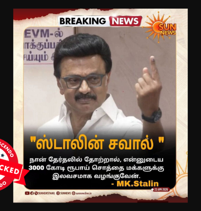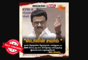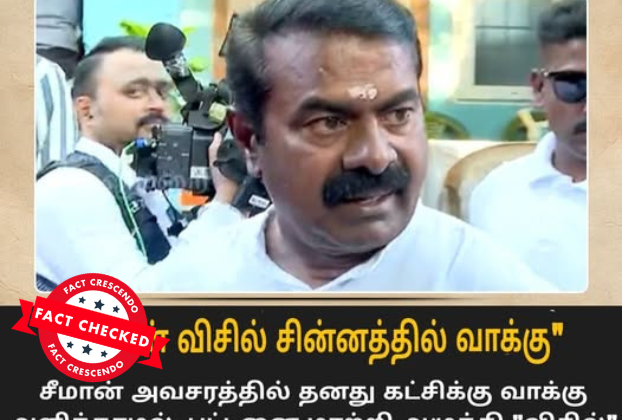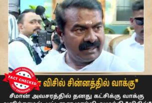 ‘‘விசில் சின்னத்தில் வாக்கு செலுத்திய சீமான்,’’ என்று கூறி, சமூக வலைதளங்களில் பரவும் தகவல் பற்றி ஆய்வு மேற்கொண்டோம். தகவலின் விவரம்: இதனை வாசகர்கள் நமக்கு வாட்ஸ்ஆப் சாட்போட் (+919049053770) வழியே அனுப்பி, உண்மையா என்று சந்தேகம் கேட்டனர். இதில், ‘’ சீமான் அவசரத்தில் தனது கட்சிக்கு வாக்கு அளிக்காமல், பட்டனை மாற்றி அமுக்கி ‘’விசில்’’ சின்னத்தில் வாக்கு செலுத்திவிட்டார்.,’’ என்று எழுதப்பட்டுள்ளது. Claim Link l Claim Link 2 l Archived Link புதிய தலைமுறை […]