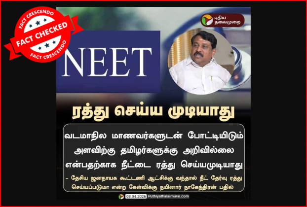 வாக்கு கேட்டு சென்ற இடத்தில் கனிமொழியை மக்கள் விரட்டியடித்தனர் என்று ஒரு வீடியோ சமூக ஊடகங்களில் வைரலாக பகிரப்பட்டு வருகிறது. இது தொடர்பாக ஆய்வு செய்தோம். தகவலின் விவரம்: உண்மைப் பதிவைக் காண: Facebook I Archive கனிமொழியை மக்கள் மறித்துப் பேசும் வீடியோ ஃபேஸ்புக்கில் பதிவிடப்பட்டுள்ளது. கனிமொழியை விரட்டியடித்தது போன்று வீடியோவில் காட்சியோ, உரையாடலோ இல்லை. “பேசினா போதும் அக்கா” என்று மட்டும் கேட்கிறது. நிலைத் தகவலில். “விரட்டியடிக்கப்பட்ட கனிமொழி 🔥 ஓட்டு கேட்டு போகும் […]
