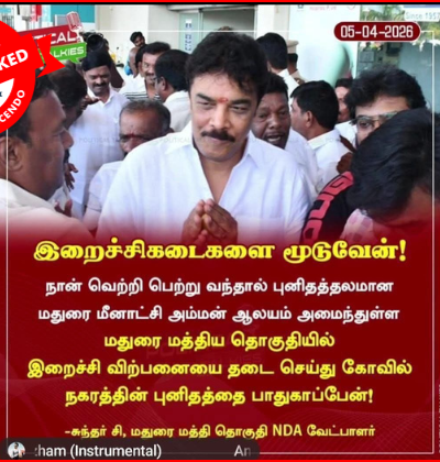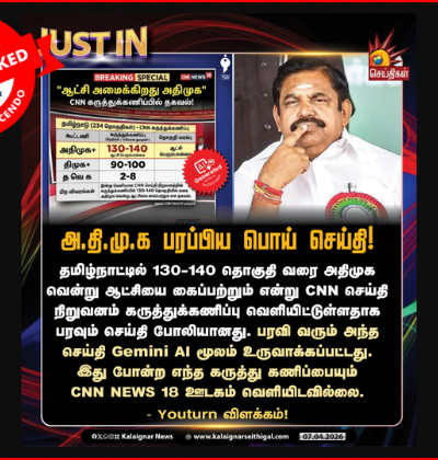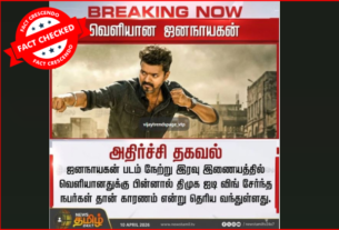 ‘‘ஜனநாயகன் படம் இணையத்தில் வெளியானதற்கு திமுக ஐடி விங் காரணம்,’’ என்று கூறி, சமூக வலைதளங்களில் பரவும் தகவல் பற்றி ஆய்வு மேற்கொண்டோம். தகவலின் விவரம்: இதனை வாசகர்கள் நமக்கு வாட்ஸ்ஆப் சாட்போட் (+919049053770) வழியே அனுப்பி, உண்மையா என்று சந்தேகம் கேட்டனர். இதில், ‘’ வெளியான ஜனநாயகன். அதிர்ச்சி தகவல். ஜனநாயகன் படம் நேற்று இரவு இணையத்தில் வெளியானதுக்கு பின்னால் திமுக ஐடி விங் சேர்ந்த நபர்கள்தான் காரணம் என்று தெரிய வந்துள்ளது,’’ என்று எழுதப்பட்டுள்ளது. […]