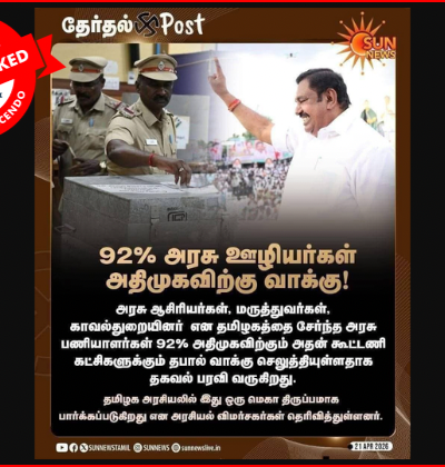 92% அரசு ஊழியர்கள் அதிமுக-வுக்கு வாக்களித்தார்கள் என்று பரவும் நியூஸ் கார்டுகள் உண்மையா?