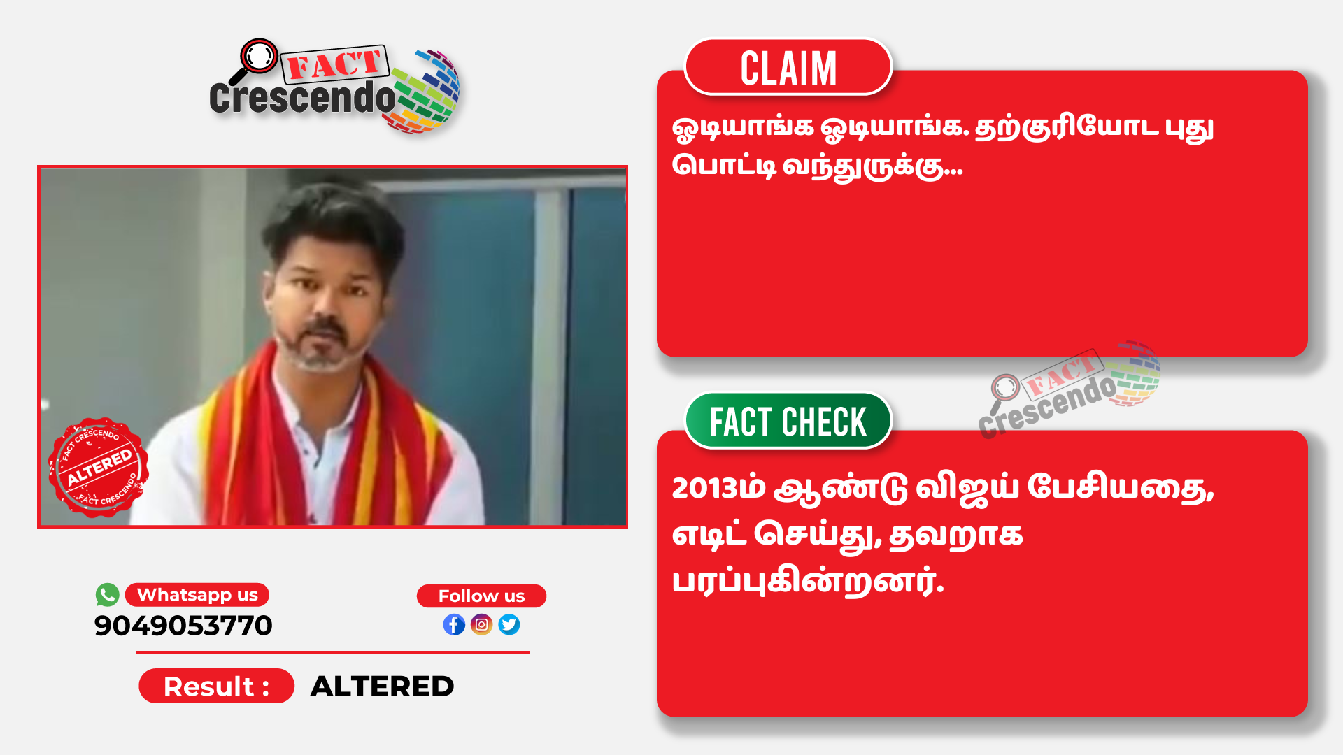 இந்த வீடியோவை எடுத்து, புதியது போன்று சற்று மாறுதல் செய்து, ஜனநாயகன் பட விவகாரத்துடன் தொடர்புபடுத்தி, வதந்தி பரப்புகிறார்கள்.