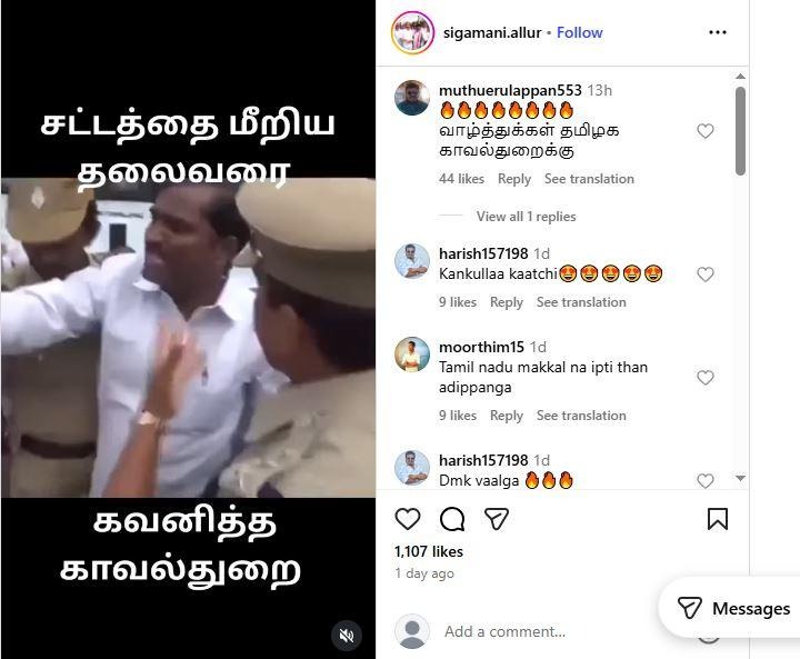 இதில், ‘’ சட்டத்தை மீறிய தலைவரை கவனித்த காவல்துறை… வாழ்த்துக்கள் தமிழக காவல்துறைக்கு..,’’ என்று எழுதப்பட்டுள்ளது.