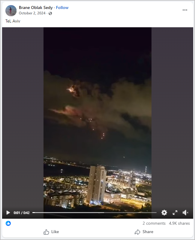 அதே நேரத்தில் 2024ம் ஆண்டில் இந்த வீடியோவை சிலர் சமூக ஊடகங்களில் பதிவிட்டிருந்ததையும் காண முடிந்தது. சில பதிவுகளில் எந்த இடம் என்று குறிப்பிடவில்லை. ஆனால், சிறப்பான சம்பவம் என்பது போல பதிவிட்டிருந்தனர். ஒரு பதிவில் இது டெல் அவிவ் மீது நடத்தப்பட்ட தாக்குதல் என்று குறிப்பிடப்பட்டிருந்தது.