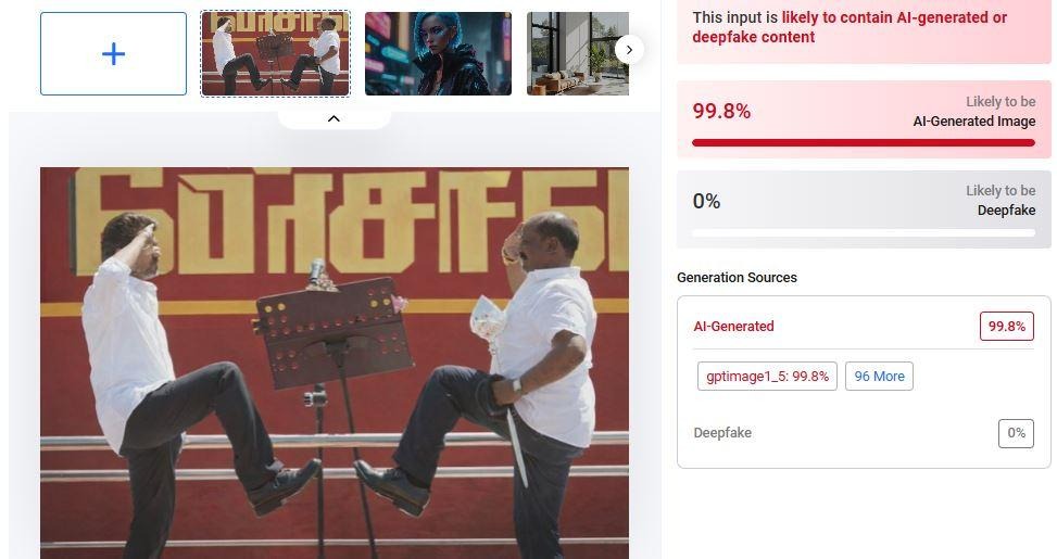 மேற்கண்ட புகைப்படம் உண்மையா என்று நாம் ஆய்வு மேற்கொண்டோம். Hivemoderation, Wasitai போன்ற இணையதளங்கள் உதவியுடன் சரிபார்த்தபோது, இது AI மூலமாக தயாரிக்கப்பட்டது, என்று தெரியவந்தது.