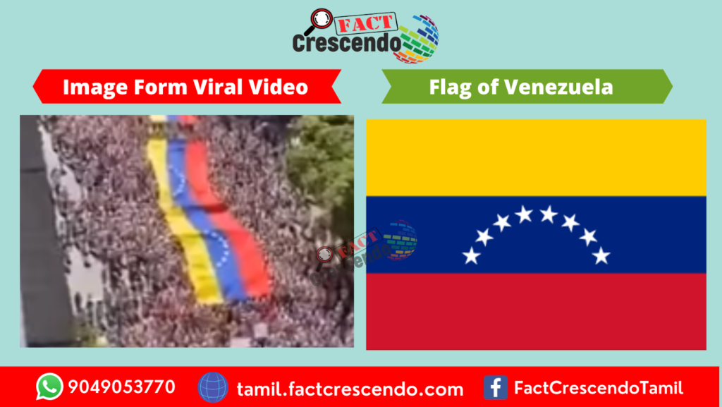 வெனிசுலா நாட்டு கொடியில் உள்ள நட்சத்திரங்கள் சிவப்பு பக்கத்தைப் பார்த்தது போன்று அரை வட்ட வடிவில் இருக்கும். ஆனால், இந்த வீடியோவில் மஞ்சள் பக்கத்தைப் பார்த்தது போன்று உள்ளது. எனவே, இந்த வீடியோ போலியானது என்று குறிப்பிட்டிருந்தனர். நாமும் அந்த நாட்டுக் கொடியுடன் இந்த வீடியோவில் இடம் பெற்றிருந்த கொடியை ஒப்பிட்டுப் பார்த்தோம். நட்சத்திரங்கள் தவறாக இருப்பது தெளிவானது. இந்த ஆதாரங்கள் அடிப்படையில் நாம் ஆய்வுக்கு எடுத்துக்கொண்ட பதிவு தவறானது என்று உறுதி செய்யப்படுகிறது.