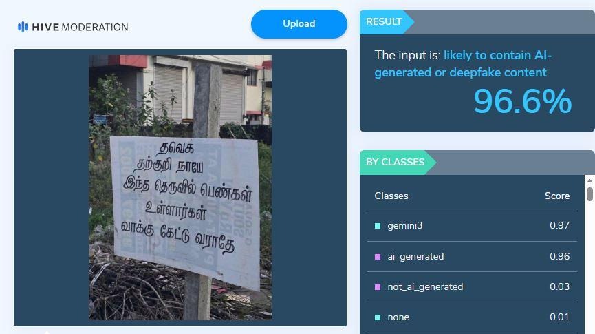 கூடுதல் ஆதாரத்திற்காக, wasitai மற்றும் hive moderation ஆகிய இணையதளங்கள் உதவியுடன் சரிபார்த்து, இவை AI முறையில் தயாரிக்கப்பட்ட படங்கள்தான், என்பதை உறுதி செய்தோம்.