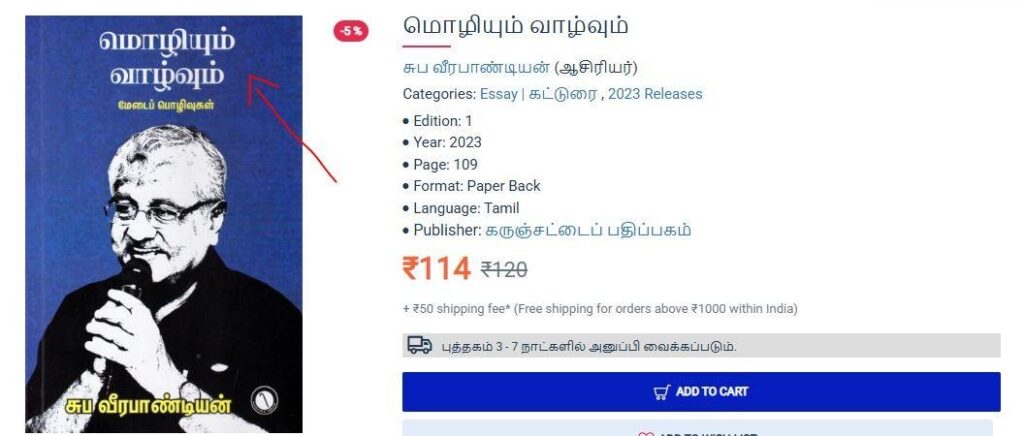 மேற்கண்ட தகவல் உண்மையா என்று நாம் ஆய்வு மேற்கொண்டோம். இதுதொடர்பாக, சுப. வீரபாண்டியன் தரப்பில் கேட்டோம். அப்போது, ‘’ மொழியும் வாழ்வும் (மேடைப் பொழிவுகள்) என்ற பெயரில் கடந்த 2023ம் ஆண்டு நாங்கள் ஒரு புத்தகம் வெளியிட்டோம். அதன் அட்டைப் படத்தை எடுத்து, வேண்டுமென்றே எடிட் செய்து, இவ்வாறு வதந்தி பரப்புகிறார்கள்,’’ என்று தெரிவித்தனர்.
