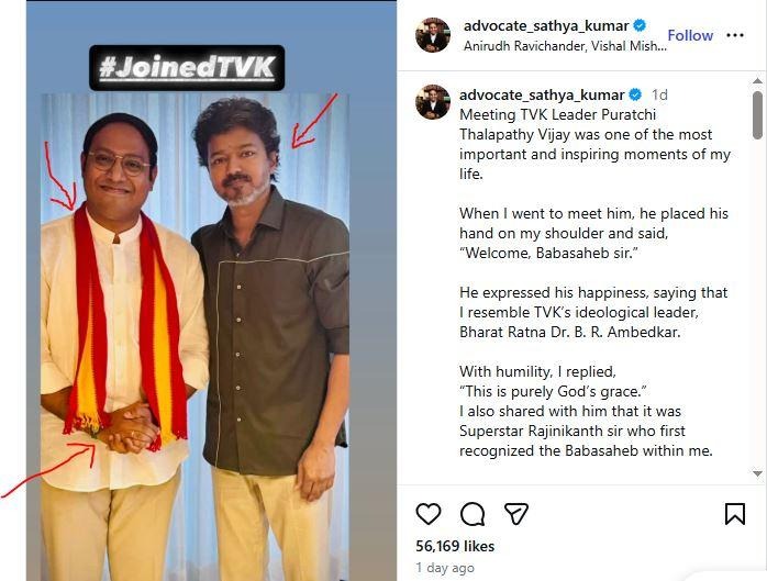இதன்படி, வழக்கறிஞர் சத்ய குமார் என்பவர் சமீபத்தில் தவெக தலைவர் விஜய் முன்பாக, தவெக., கட்சியில் தன்னை இணைத்துக் கொண்டார். இதுதொடர்பாக, அவர் சமூக வலைதளங்களில் வெளியிட்ட புகைப்படத்தை எடுத்து, எடிட் செய்து, யூ டியுபர் மாதேஷ் தவெக.,வில் இணைந்ததாகக் கூறி வதந்தி பரப்புகிறார்கள்.