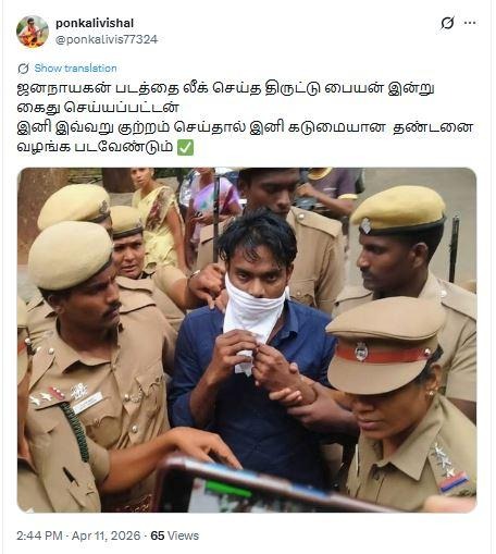 ‘‘ஜனநாயகன் படத்தை லீக் செய்த நபர் கைது,’’ என்று கூறி, சமூக வலைதளங்களில் பரவும் புகைப்படம் பற்றி ஆய்வு மேற்கொண்டோம்.