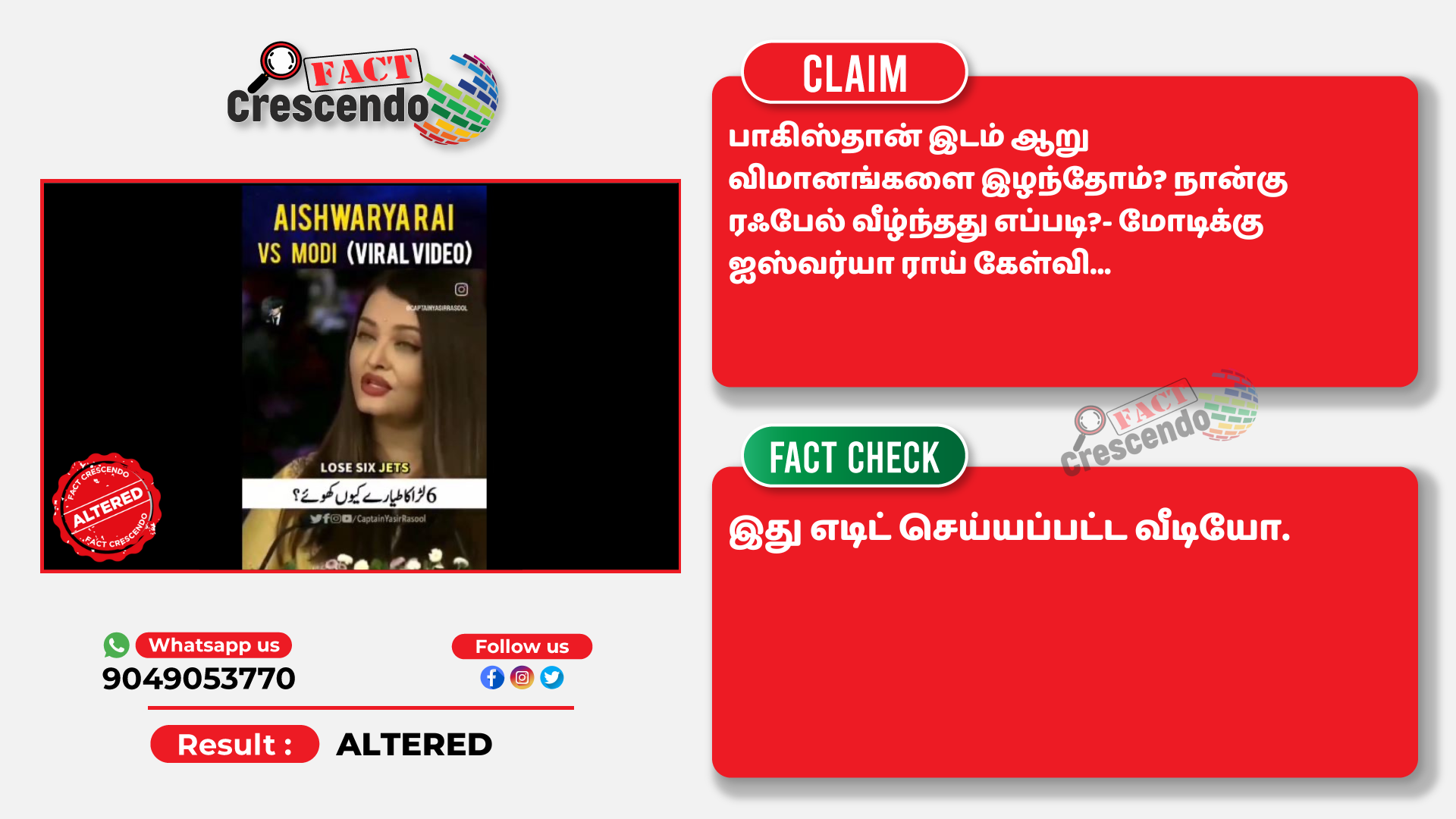 இதன்மூலமாக, ஐஸ்வர்யா ராய் குரலை மட்டும் எடிட் செய்து, அவர் பேசாத கருத்தை சேர்த்து, வதந்தி பரப்புகிறார்கள் என்று நமக்கு தெளிவாகிறது.