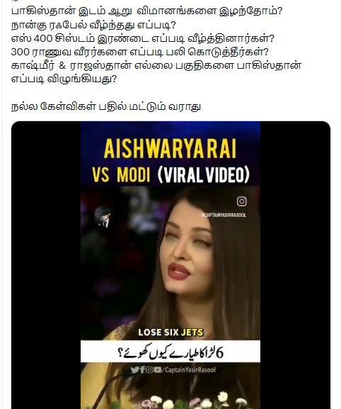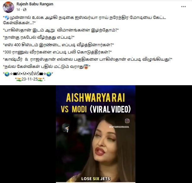 ‘’மோடியை கேள்வி கேட்ட ஐஸ்வர்யா ராய்,’’ என்று கூறி, சமூக வலைதளங்களில் பகிரப்படும் ஒரு வீடியோ தகவல் பற்றி ஆய்வு மேற்கொண்டோம்.