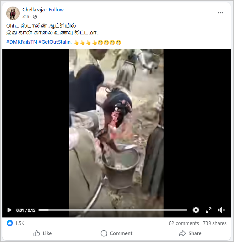 பள்ளி மாணவர்கள் உணவை ஒரு பக்கெட்டில் கொட்டும் வீடியோ ஃபேஸ்புக்கில் பதிவிடப்பட்டுள்ளது. நிலைத் தகவலில், “Ohh… ஸ்டாலின் ஆட்சியில்