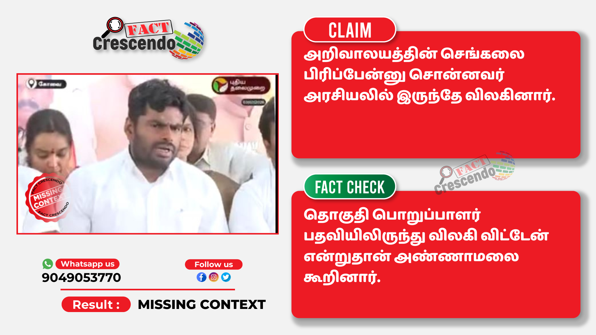 ‘‘அரசியலில் இருந்து விலகிய அண்ணாமலை,’’ என்று கூறி, சமூக வலைதளங்களில் பரவும் தகவல் பற்றி ஆய்வு மேற்கொண்டோம்.