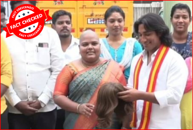 ‘‘ஜனநாயகன் படம் தாமதம் இன்றி ரிலீஸ் செய்ய கேட்டு, மொட்டை போட்ட ரசிகைக்கு விக் வழங்கப்பட்டது’’, என்று கூறி, சமூக வலைதளங்களில் பகிரப்படும் ஒரு தகவல் பற்றி ஆய்வு மேற்கொண்டோம்.  தகவலின் விவரம்: இதனை வாசகர்கள் நமக்கு வாட்ஸ்ஆப் சாட்போட் (+919049053770) வழியே அனுப்பி, உண்மையா என்று சந்தேகம் கேட்டனர்.  இதில், ‘’ ஜனநாயகன் படம் நல்லபடியாக ரிலீஸ் ஆகவேண்டும் என்று ஒரு விஜய் ரசிகை மொட்டை அடித்துக் கொண்டார் அவருக்கு கட்சி சார்பாக வீக் வழங்கப்பட்டது […]