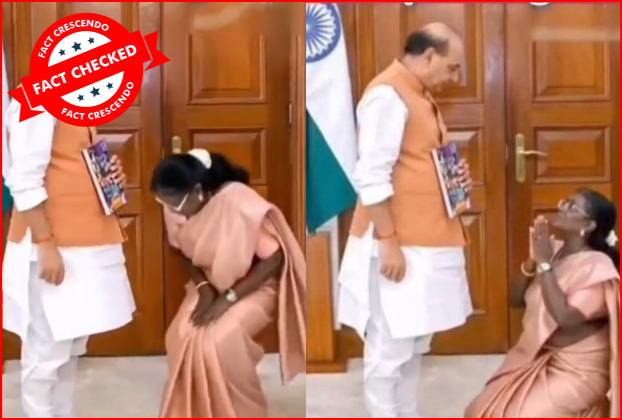 ராஜ்நாத் சிங் காலில் விழுந்த குடியரசுத் தலைவர் என்று பரவும் வீடியோ உண்மையா?