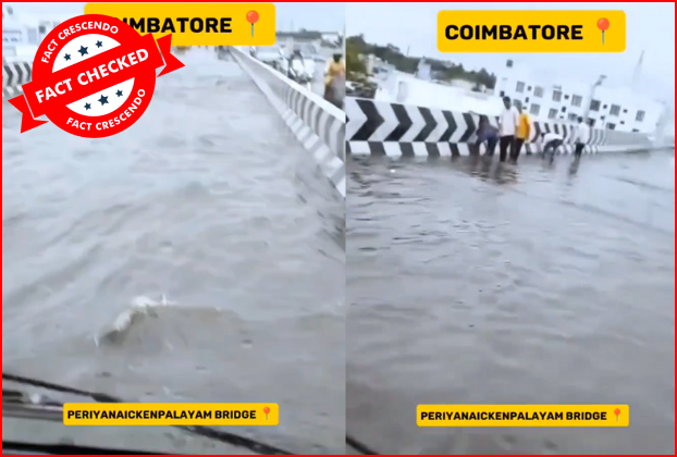கோவையில் புதிதாக கட்டப்பட்ட மேம்பாலத்தில் மழை நீர் தேங்கியது என்று ஒரு வீடியோ சமூக ஊடகங்களில் பகிரப்பட்டு வருகிறது. இது தொடர்பாக ஆய்வு செய்தோம். தகவலின் விவரம்: உண்மைப் பதிவைக் காண: Facebook I Archive மேம்பாலத்தில் ஏறும் பகுதியில் மழை நீர் தேங்கியிருக்கும் வீடியோ ஃபேஸ்புக்கில் பதிவிடப்பட்டுள்ளது. வீடியோவில் ஆங்கிலத்தில் கோயமுத்தூர், பெரியநாயக்கன்பாளையம் பாலம் என்று எழுதப்பட்டுள்ளது. நிலைத் தகவலில், “திமுக காரங்க கோவில் கட்டி தான் கும்பிடணும்  இவங்கள தற்குறி  சொல்றதா இல்ல கூமுட்டை […]