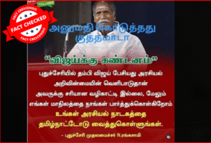 உரிய ஆதாரங்களின்படி நாம் ஆய்வு செய்த ஃபேஸ்புக் தகவலில் தவறான தகவல் உள்ளதாக நிரூபித்துள்ளோம். நமது வாசகர்கள் இத்தகைய தவறான செய்தி, புகைப்படம் மற்றும் வீடியோவை பகிர வேண்டாம் என கேட்டுக் கொள்கிறோம்.