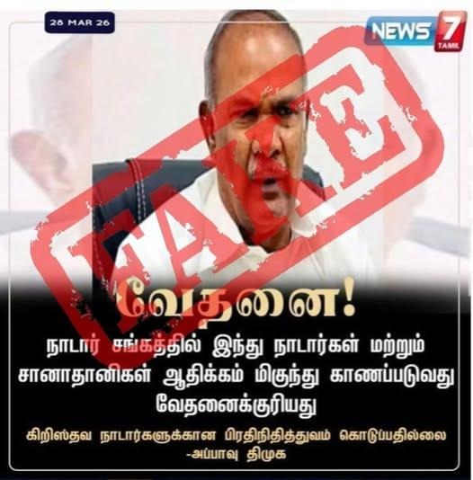 ‘‘நாடார் சங்கத்தில் கிறிஸ்தவர்களுக்கு பிரதிநிதித்துவம் இல்லை,’’ என்று திமுக மூத்த தலைவர் அப்பாவு கூறியதாக, சமூக வலைதளங்களில் பரவும் தகவல் பற்றி ஆய்வு மேற்கொண்டோம்.