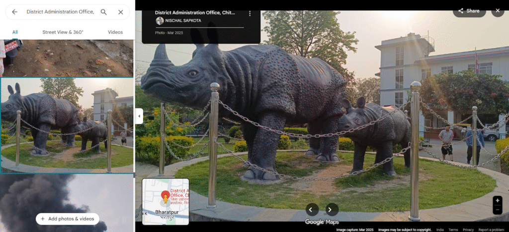 மேலும், கட்டிடத்தின் மீது பறக்கும் கொடியை பார்க்கும் போதே அது நேபாள நாட்டின் கொடி என்பதை அறிய முடிகிறது. கட்டிடத்தின் மொழி பெயர்ப்பும் கூட அது மாவட்ட நிர்வாக அலுவலகம், சிட்வான் (District Administration Office, Chitwan) என்று தெரியவருகிறது. சிட்வான் என்பது நேபாள நாட்டில் உள்ள நகரமாகும். கட்டிடத்தில் எழுதப்பட்டிருப்பதும் நேபாள மொழி என்று கூகுள் டிரான்ஸ்லேட்டர் கூறுகிறது.