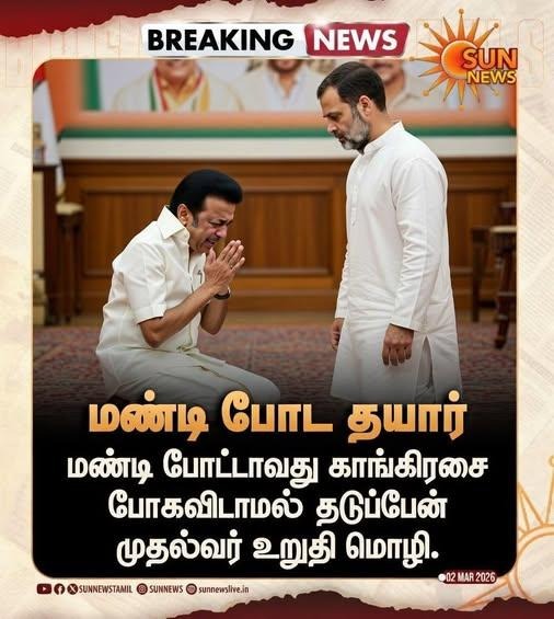 இதில், ‘’ மண்டி போட தயார். மண்டி போட்டாவது காங்கிரசை போகவிடாமல் தடுப்பேன் முதல்வர் உறுதி மொழி ’’ என்று எழுதப்பட்டுள்ளது.