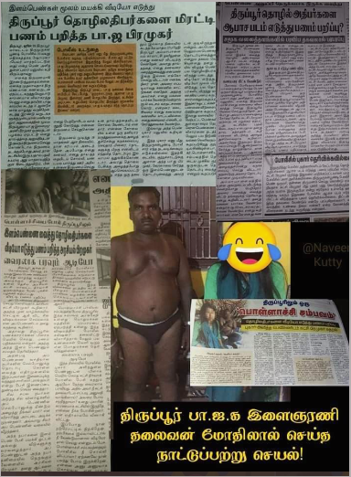 2019ம் ஆண்டு பொள்ளாச்சி பாலியல் வன்கொடுமை சம்பவத்துக்குப் பிறகு பா.ஜ.க நிர்வாகி ஒருவர் தன்னுடைய காதலியுடன் இணைந்து தொழில் அதிபர்களை மிரட்டி பணம் சம்பாதித்தார் என்று ஒரு செய்தி வெளியானது. அந்த நபர் காதலியுடன் இருக்கும் புகைப்படம் அப்போது சமூக ஊடகங்களில் வைரல் ஆனது.