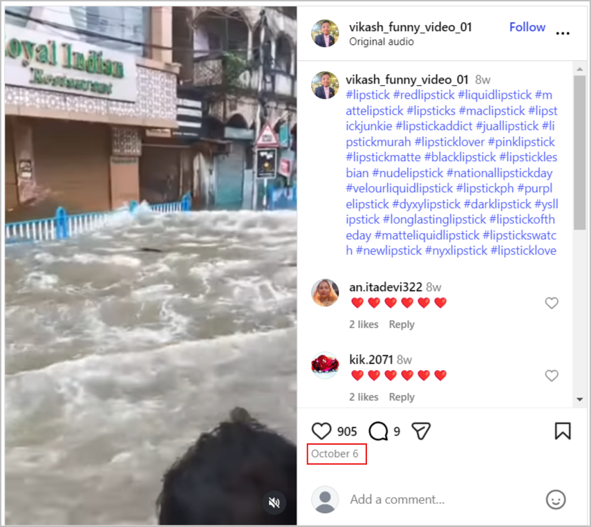 வீடியோ காட்சிகளைப் புகைப்படங்களாக மாற்றி கூகுள் லென்ஸ் தளத்தில் பதிவேற்றித் தேடினோம். அதில் வீடியோவில் காட்டப்பட்டிருந்த Royal Indian Restaurant என்ற பெயரில் மேற்கு வங்க தலைநகர் கொல்கத்தாவில் உணவகம் இருப்பதாக தெரியவந்தது. அந்த கடையும் நாம் ஆய்வுக்கு எடுத்துக்கொண்ட வீடியோவின் கடையும் ஒன்றாக இருந்தது. மேலும் கடந்த அக்டோபர் மாதத்திலிருந்து இந்த வீடியோவை பலரும் சமூக ஊடகங்களில் பதிவிட்டு வந்திருந்ததையும் காண முடிந்தது. இதன் மூலம் இது சென்னை மழை வெள்ளத்தின் காட்சியில்லை என்பது உறுதியானது.