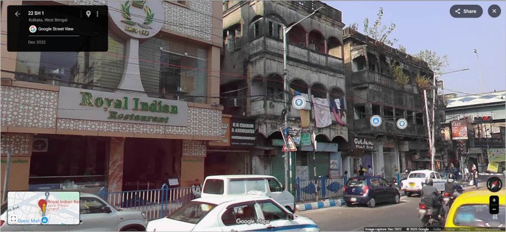 இந்த வீடியோ கொல்கத்தாவில் எடுக்கப்பட்டது என்பதை உறுதி செய்துகெகாள்ள அந்த சாலையில் கூகுள் ஸ்ட்ரீட் வியூவை பார்த்தோம். வீடியோவில் இடம் பெற்றிருந்த சாலையின் கடைகள் அனைத்தும் கூகுள் ஸ்ட்ரீட் வியூவில் காண முடிந்தது. இதன் மூலம் இந்த சாலை சென்னையில் இல்லை, கொல்கத்தாவில் உள்ளது என்பது உறுதியானது. இதன் அடிப்படையில் நாம் ஆய்வுக்கு எடுத்துக்கொண்ட பதிவு தவறானது என்று உறுதி செய்யப்படுகிறது.