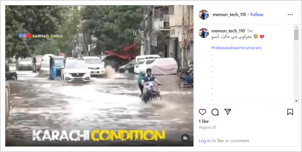 கராச்சி கண்டிஷன் என்று குறிப்பிட்டு இந்த வீடியோவை பலரும் 2025 ஆகஸ்டில் பதிவிட்டிருந்தனர். கராச்சியின் மோசமான நிலை என்று குறிப்பிட்டு பலரும் பதிவிட்டிருந்ததைக் காண முடிந்தது. பாகிஸ்தான் ஊடகங்களிலும் கூட இந்த வீடியோவுடன் செய்தி வெளியாகி இருந்ததைக் காண முடிந்தது. இதன் மூலம் இந்த வீடியோ சமீபத்தில் ஏற்பட்டுள்ள சென்னை மழை பாதிப்புடன் தொடர்புடையது இல்லை என்பது உறுதியானது.