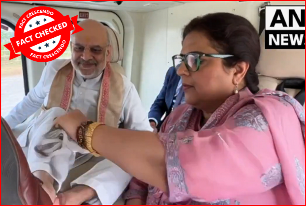 அமித்ஷாவின் காலணியை துடைத்த நவிகா என்று பரவும் வீடியோ உண்மையா?