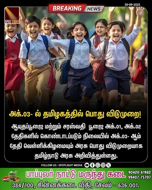 இதில், ‘’ *அக்.,3 வெள்ளிக்கிழமை பொது விடுமுறை!*